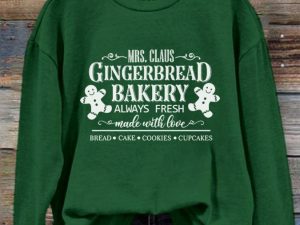 Women’s Mrs Claus Gingerbread Bakery Christmas Cookies Print Sweatshirt